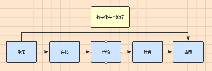 數(shù)字化包括數(shù)據(jù)的采集、傳輸、存儲(chǔ)、計(jì)算和應(yīng)用,是指將各類復(fù)雜多變的信息轉(zhuǎn)變?yōu)榭梢远攘康臄?shù)據(jù),并加以處理的過(guò)程。
