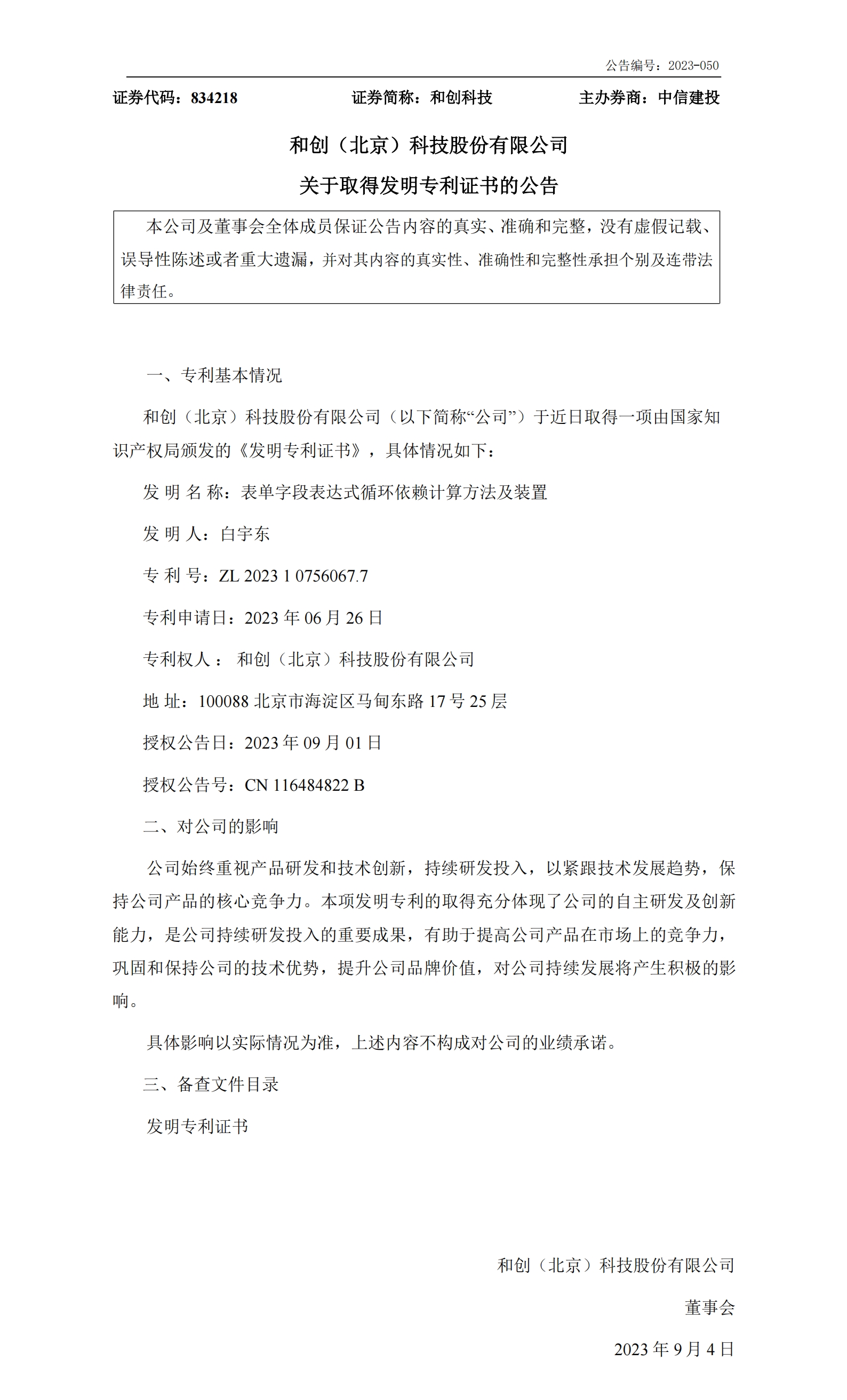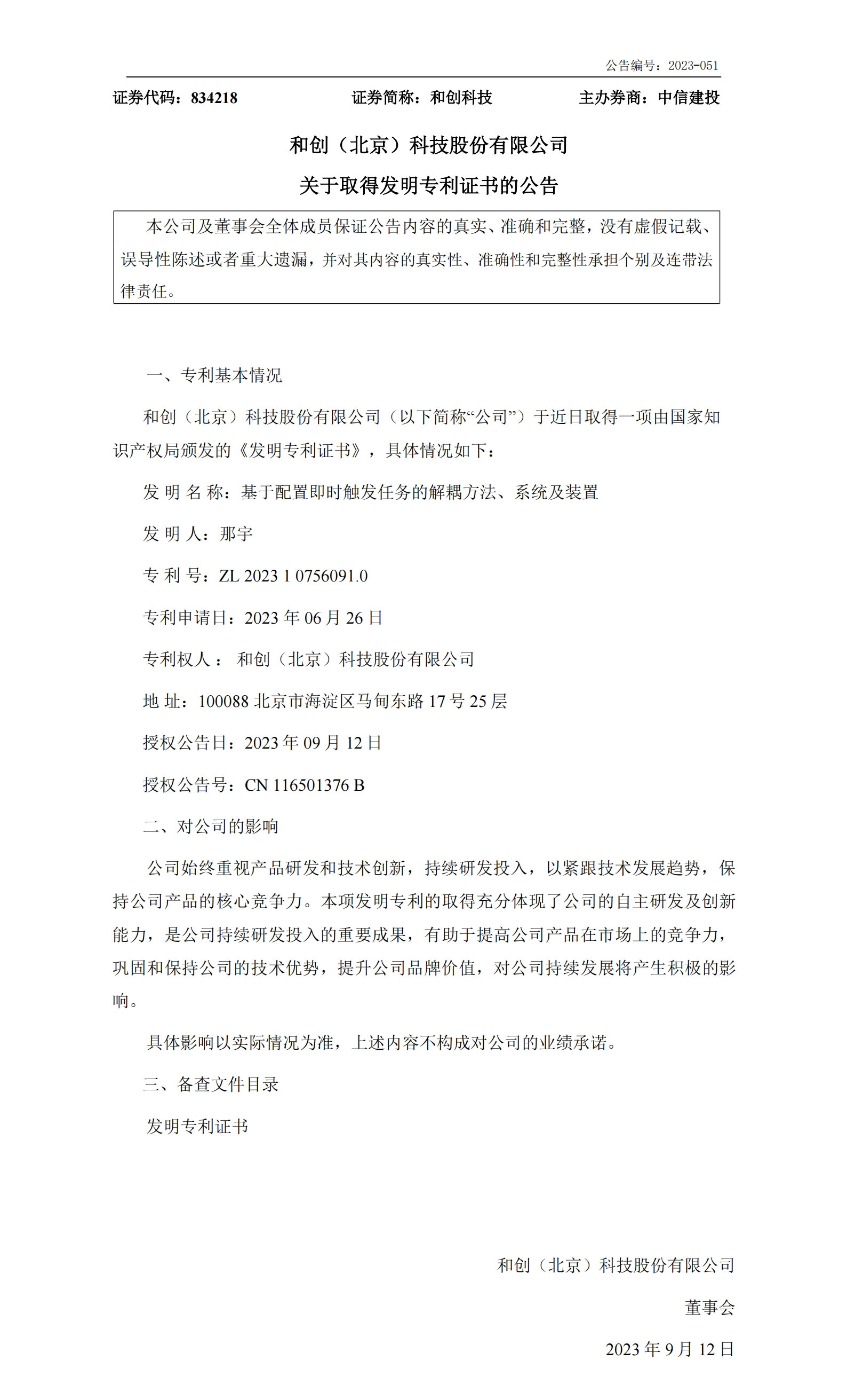 紅圈新聞?|?喜報(bào)!和創(chuàng)科技近日連續(xù)取得兩項(xiàng)最新發(fā)明專(zhuān)利!