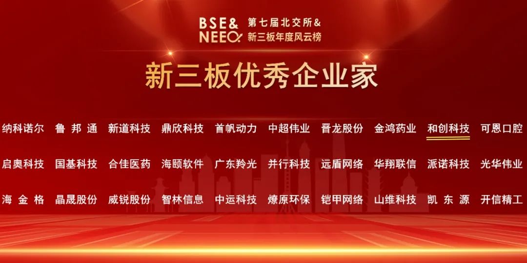 和創(chuàng)科技斬獲第七屆北交所&新三板年度風(fēng)云榜“新三板最具投資價值企業(yè)”等兩項殊榮