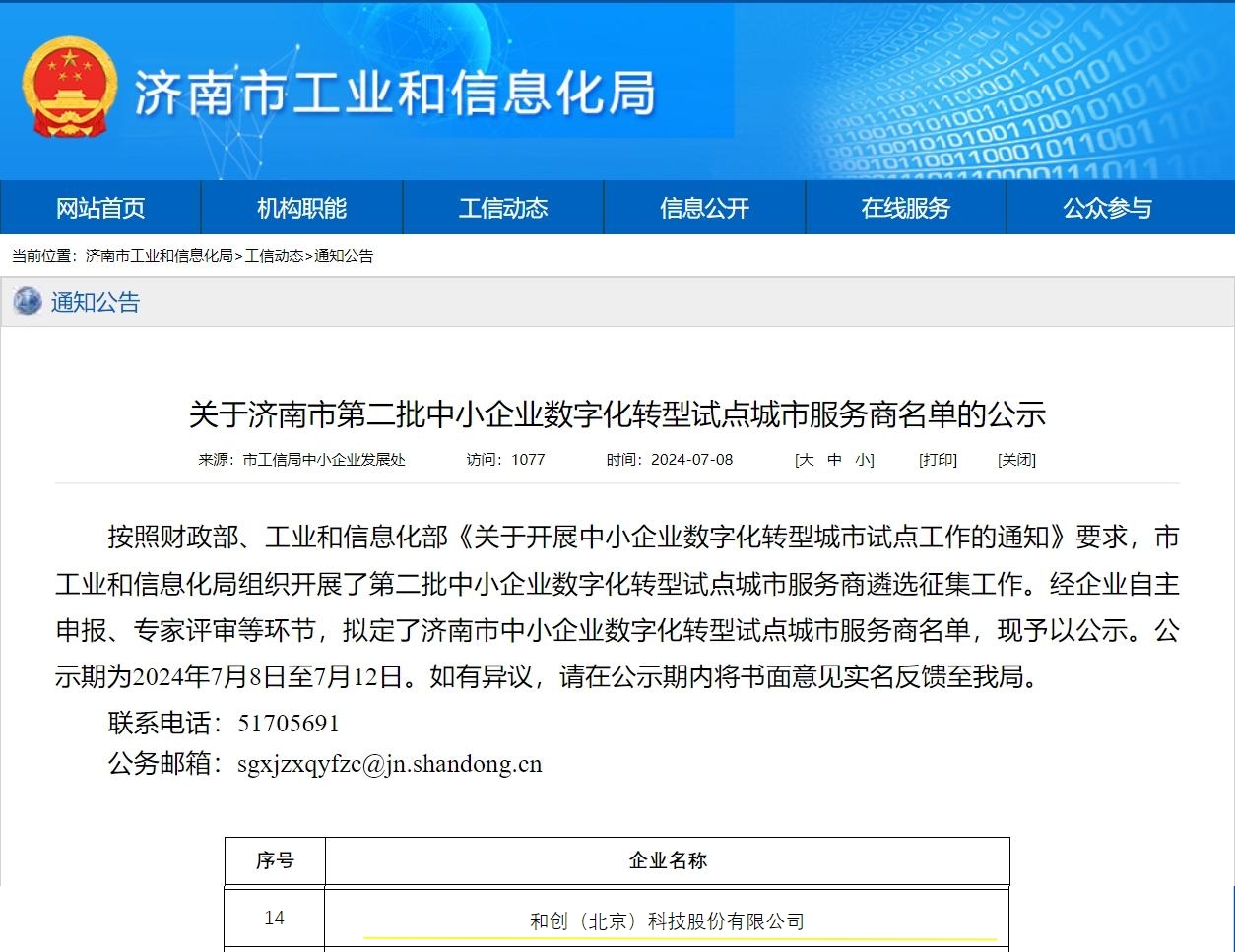 紅圈新聞?|?喜報!和創(chuàng)科技入選濟南市第二批“中小企業(yè)數(shù)字化轉(zhuǎn)型試點城市服務(wù)商”
