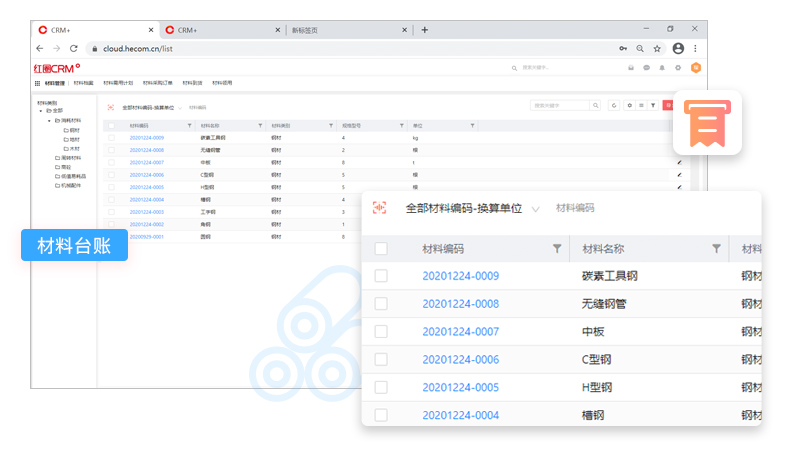 材料臺賬:實現(xiàn)提料、采購、到貨等全過程材料管理