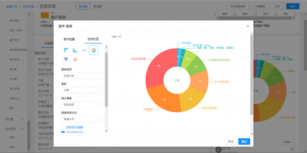 - 分析組件:選擇圖表和報表,拖入右側頁面區域進行配置
