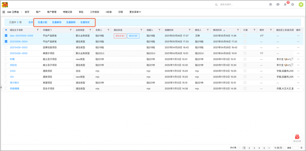 - 列表頁批量按鈕支持執行鎖定和解鎖動作:列表頁批量按鈕支持執行動作,可以執行鎖定和解鎖動作,在前端實現批量鎖定和批量解鎖