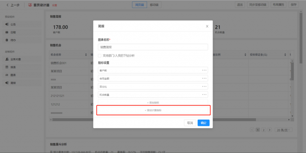 計(jì)算指標(biāo):首頁簡報(bào)組件,可支持指標(biāo)間進(jìn)行基礎(chǔ)四則運(yùn)算,生成計(jì)算指標(biāo)