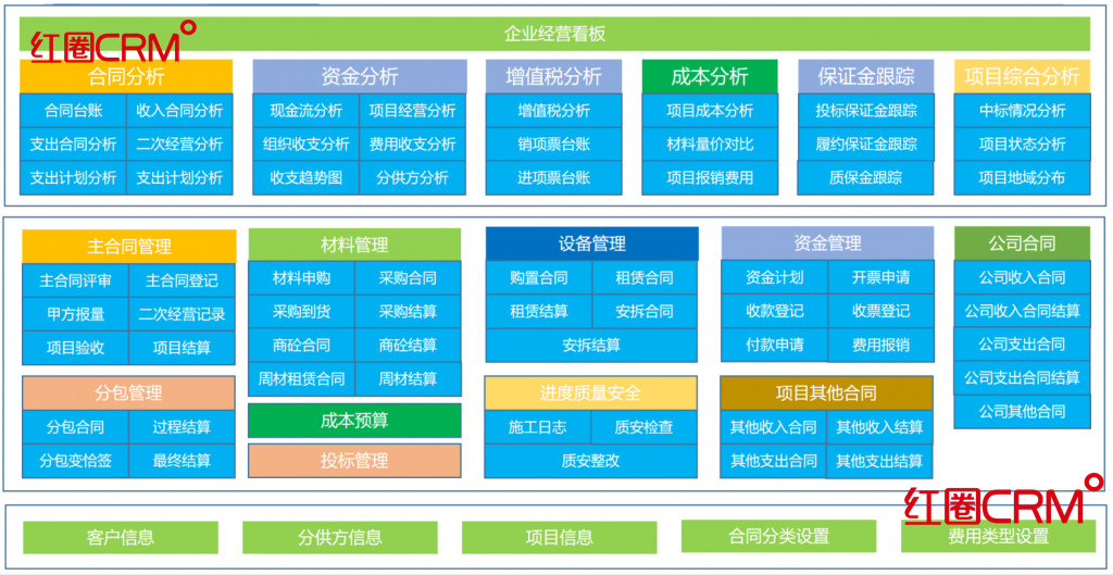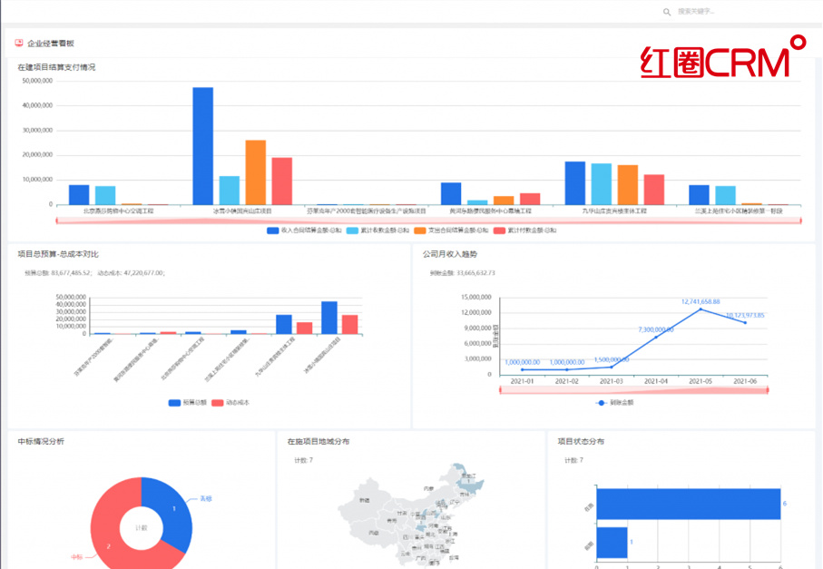 紅圈CRM v2.0專門服務(wù)于建筑工程企業(yè)項目管理,功能更聚焦于建筑工程項目經(jīng)營,六大工程業(yè)務(wù)閉環(huán),為建筑工程企業(yè)的經(jīng)營結(jié)果負(fù)責(zé)。