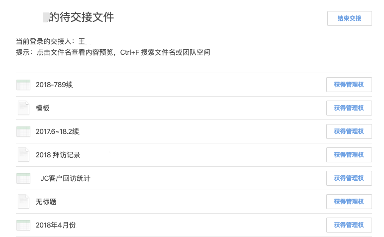 在這一過程中,交接人可以看到離職員工的文件情況: