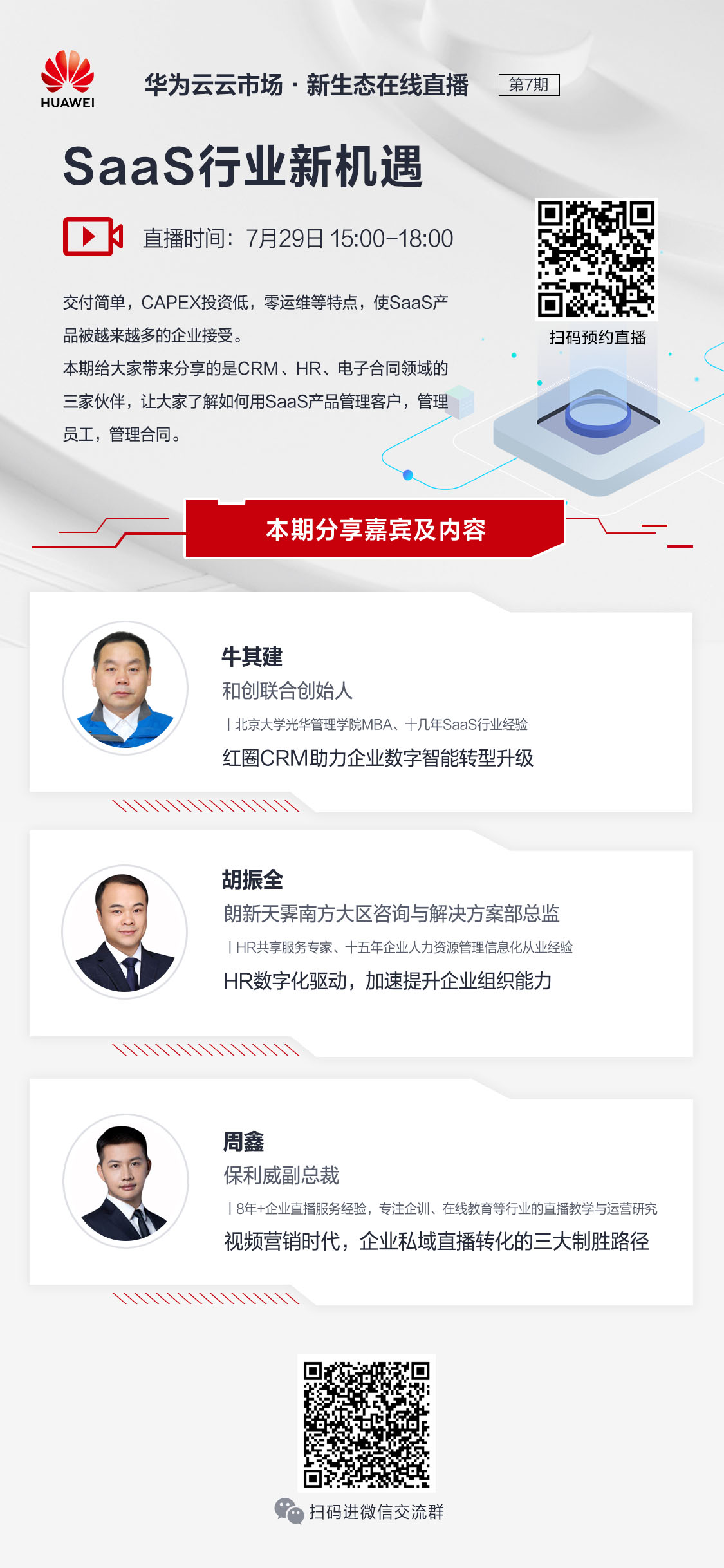 【云直播】華為云云市場.新生態(tài)在線直播系列活動第七期--《SaaS行業(yè)新機遇》7月29日下午3點