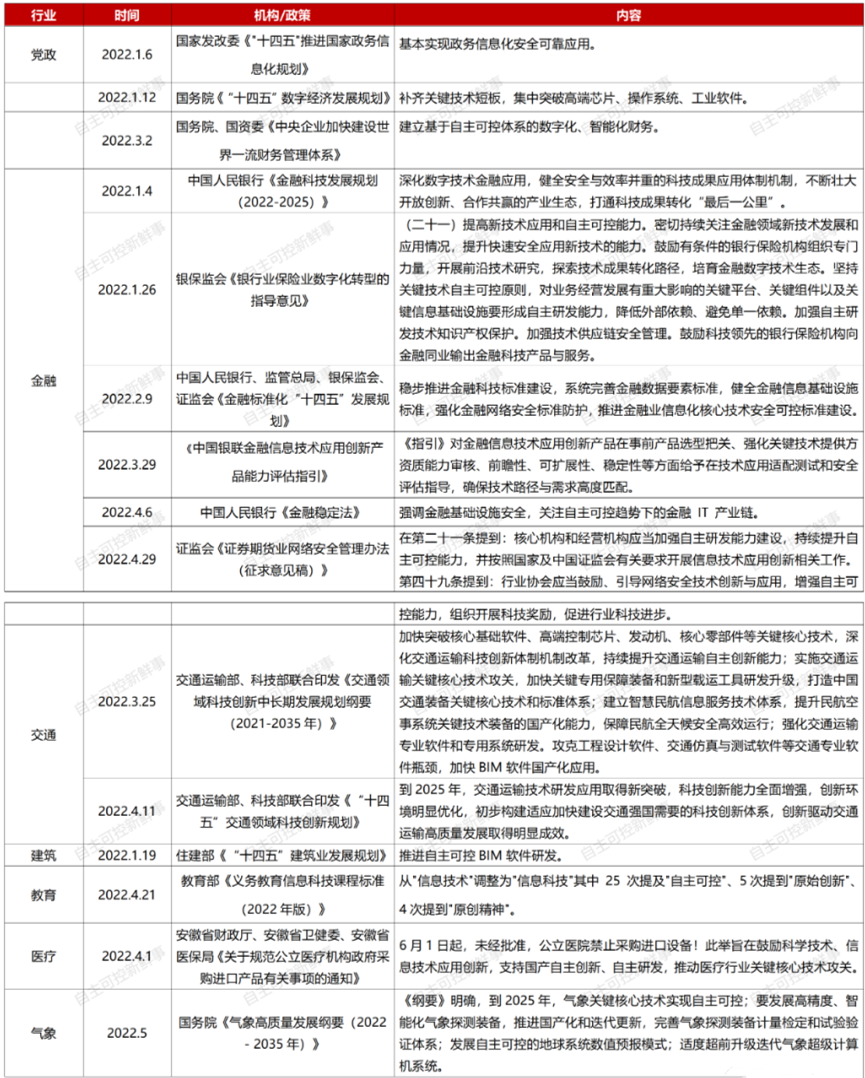 以下為2022年上半年頂層設(shè)計(jì)對(duì)“信創(chuàng)、國(guó)產(chǎn)化”的相關(guān)政策匯總: