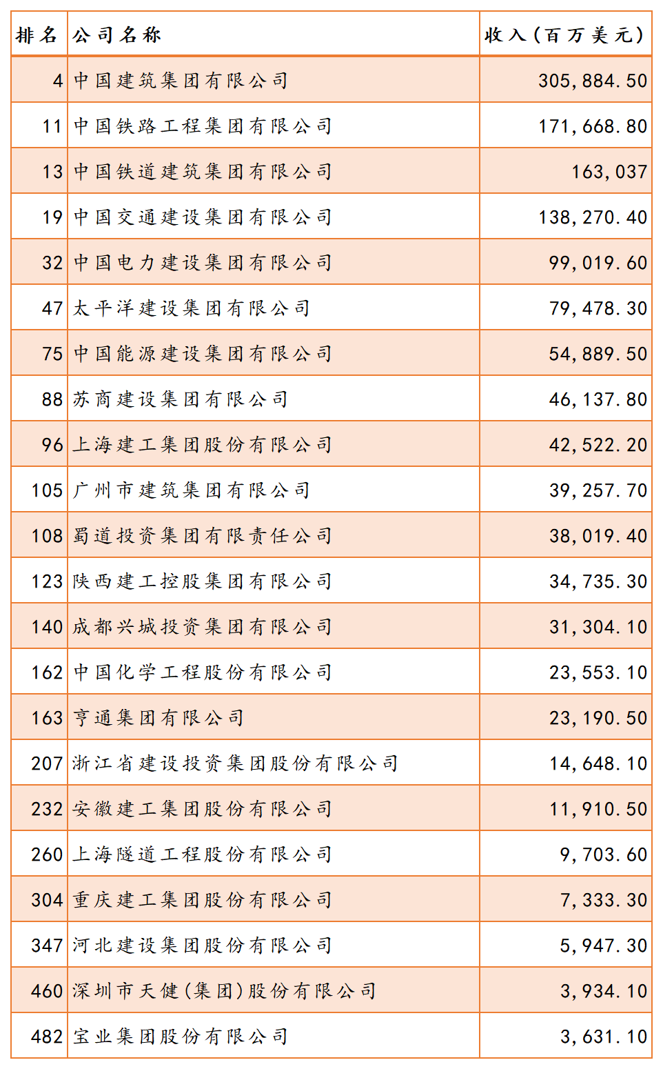 2023年《財(cái)富》中國(guó)500強(qiáng)排行榜7月25日正式發(fā)布。今年,該榜單開(kāi)放申報(bào),采用與《財(cái)富》世界500強(qiáng)一脈相承的制榜方法,同時(shí)包括了上市和非上市企業(yè)。今年工程與建筑行業(yè)共22家公司上榜: