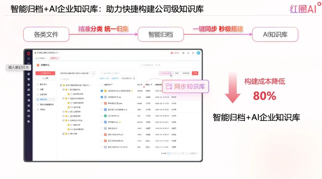 紅圈AI正在成為工程企業(yè)快速完成智能化躍遷的重要工具。它通過整合經(jīng)營數(shù)據(jù)、自動(dòng)化風(fēng)險(xiǎn)識(shí)別、智能知識(shí)檢索,幫助企業(yè)以更低的成本、更高的效率滿足政策要求,并從中獲得管理透明化和決策科學(xué)化的收益。