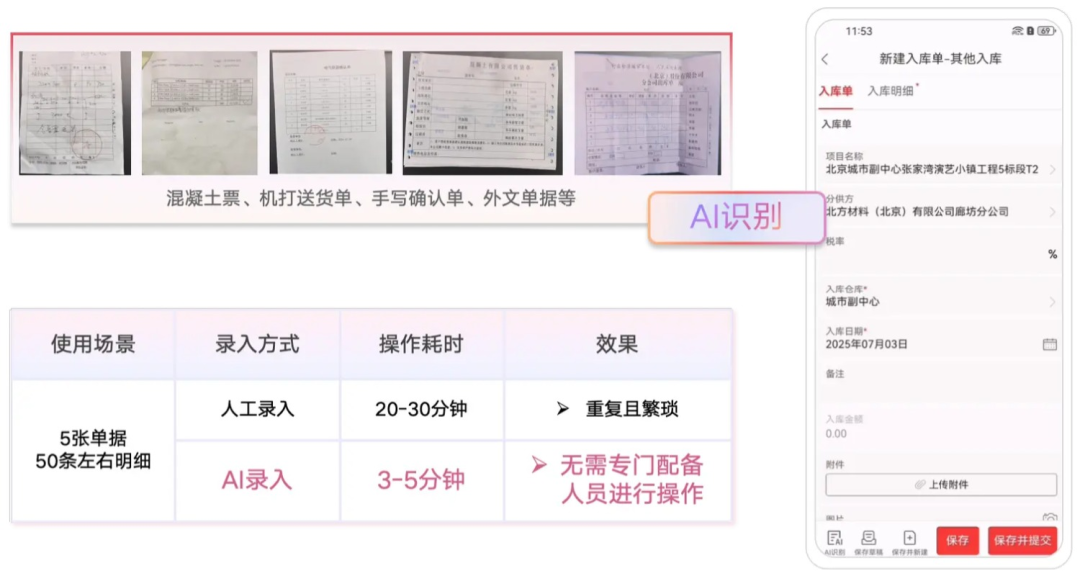 ● 材料入庫單每天幾十張、品類幾百種,人工錄入追不上實(shí)際到貨節(jié)奏;
